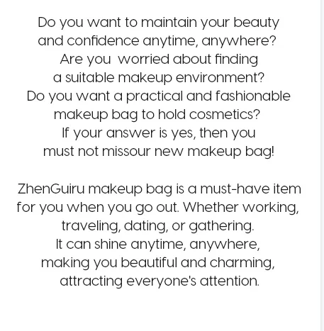 Travel Makeup Bag with MirrorSKU: 0e13bac8-0dea-4f1c-b759-8fda68093aad£57.99PriceColor*1Makeup BagQuantity*Add to CartBuy Now